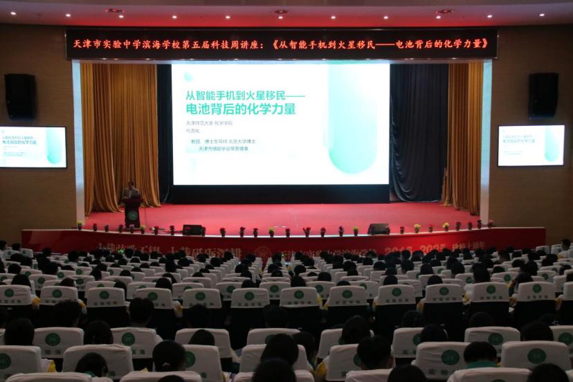 座谈会后,化学学院教师天津市特聘教授代克化为高中年级学生进行了“从智能手机到火星移民——电池背后的化学力量”科普讲座。他从人类能源史讲起,回顾能源利用发展历程,讲解锂离子电池工作原理、性能及优缺点,并分享我国在新能源电池研发和应用方面的成就及前沿发展方向。现场气氛活跃,同学们积极提问。此次讲座在同学们心中播下科学的种子,激发了对化学学科的热爱,同学们纷纷表示未来要投身国家能源科技研究,为现代化强国建设贡献青春力量。